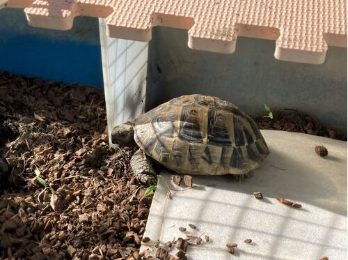 ヒガシヘルマンリクガメの「ヘルシー」 柔らかな朝陽を浴びて気持ち良さそうなヘルシーちゃん 良い季節を満喫しようね・・・