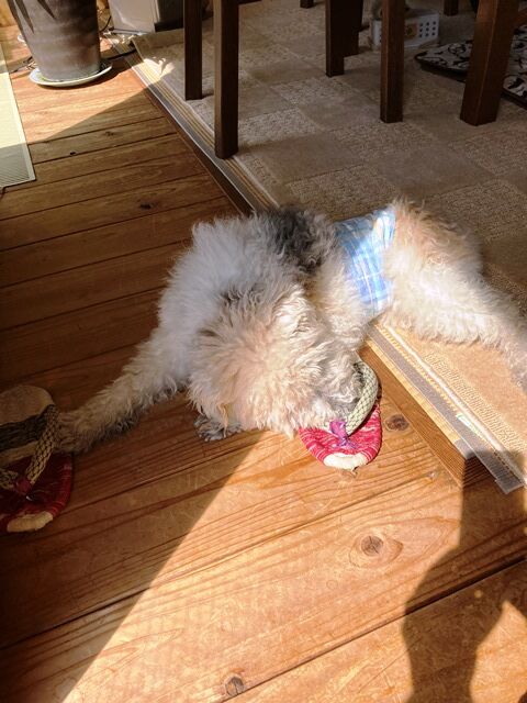 この素材のスリッパって心地良いよね~ 顔を埋めてご満悦!