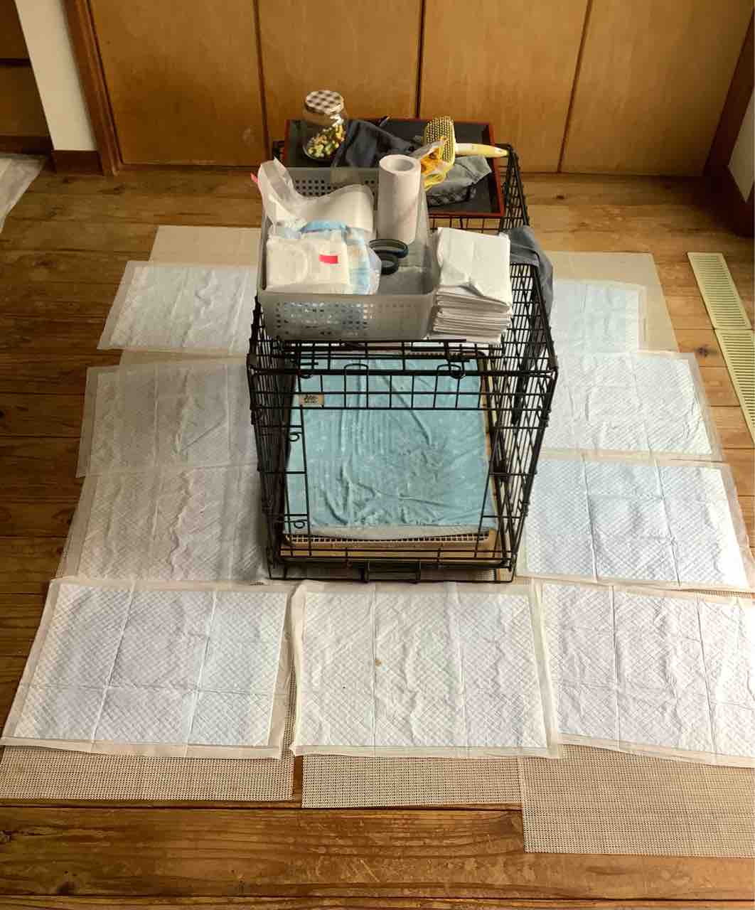 2022-09-02 爺じ トイレトレーニング結果は? スポック爺じ・・・トイレトレーニング スポック爺じ「トイレトレーニング」奮戦結果は?残念ながらオムツを外すのは無理そうですね。そこまでの信用は勝ち取れずってところ。 こんな感じでケージの周りにシートを敷き詰めこの場所で排泄出来る様にトレーニング!トイレトレーでは無理と判断しました。結果、排尿では8割程度の確率までアップしました。排便は時折出来る程でですが・・・ ま、そん訳でオムツは継続使用中なりですよ。